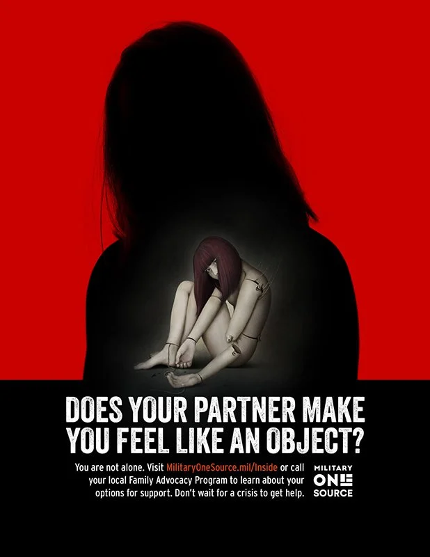 This campaign speaks to those in the military community (service members or spouses) experiencing or noticing signs of abusive behavior in their partner. We framed the experience in ways our audience can visualize and understand by representing the way they may feel on the inside. They should know they’re not alone and that support is available from Military OneSource.