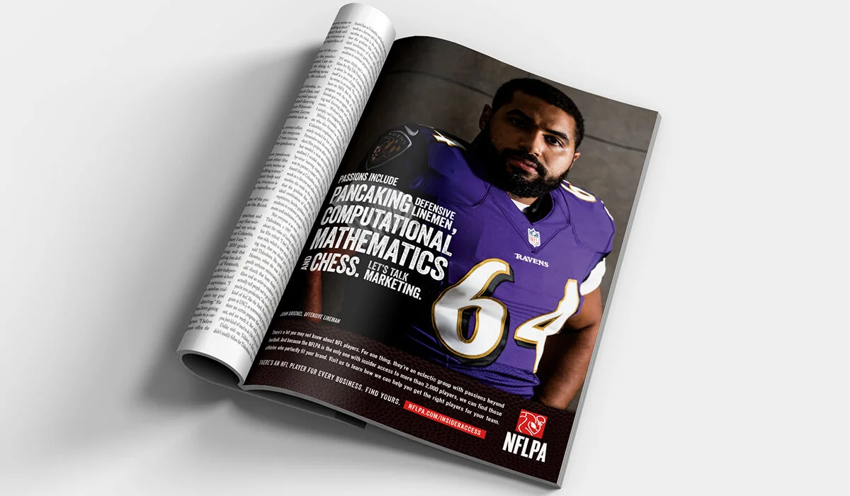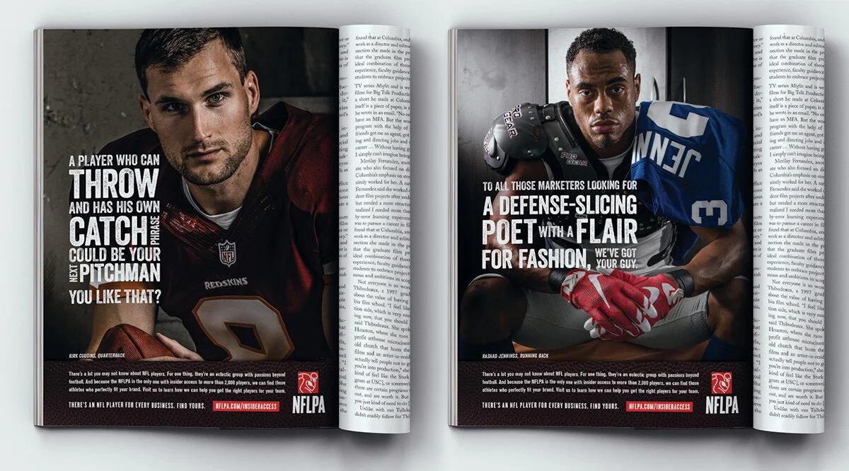 B2B campaign to promote the approximately 2,000 players and their unique personalities to marketers. Print and digital ads drive to a gamified landing page where marketers can begin the process of selecting the types of NFL players that may fit their brands.