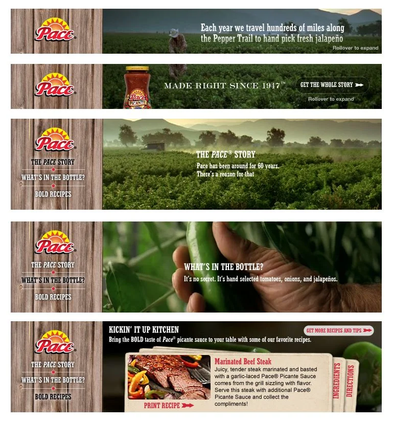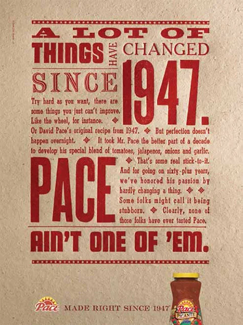 Pace was perceived as a non-innovative, fading icon. But still an icon. There is latent power to be tapped by reclaiming the brand's authenticity birthright. People like to think they can tell faux-thentic from authentic. There is a certain pride in discovering the real deal. They experiment with many salsas, but have yet to find the one that's earned a lasting place at their table. The energy-driving idea: Pace people don't compromise. I led a multi-agency creative team including Y&R, G2 interactive, Dublin PR and Marketing Drive to create an entirely new 360 campaign.